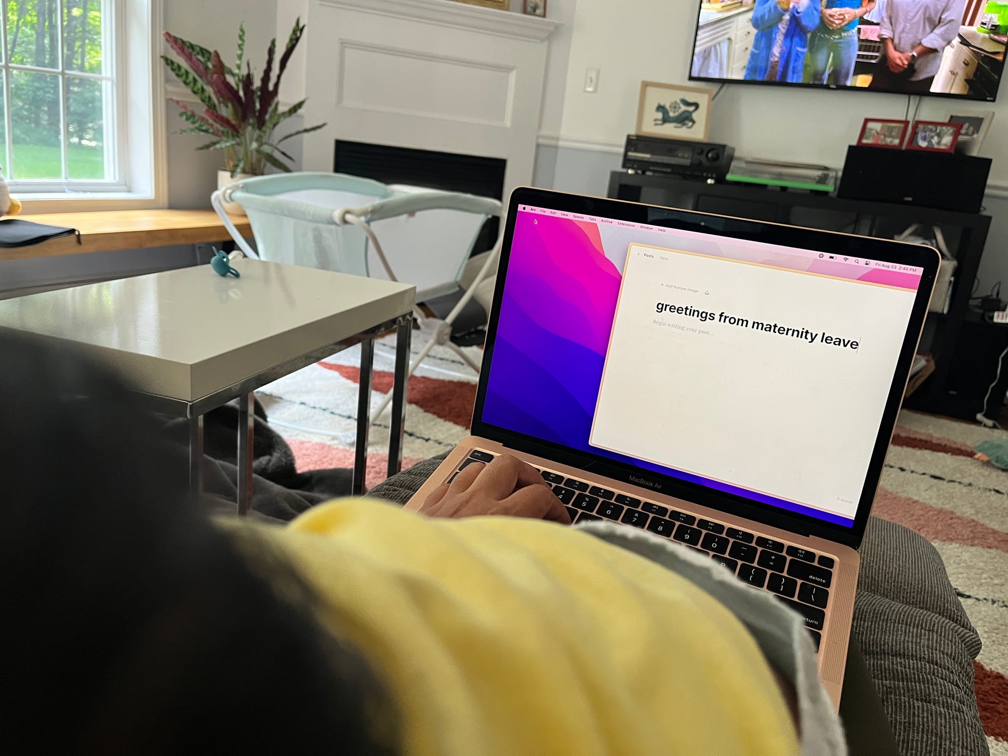 I'm lucky to live in one of the few states with a medical/family leave program for self-employed workers, which has made taking maternity leave a much less stressful experience. I keep thinking about when I told the people I work with about being pregnant, I included a line in my emails about how I was planning to take time off but also could maybe get bored and want to do some work during that time. And I mean, sure, that could end up proving true. But now, just a little over a month into my maternity leave, that feels like a truly naive and dumb thing to have said. But in my defense, I knew I was bieng naive and dumb as I said it.